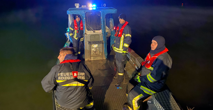Unsere Wehr rückte unverzüglich mit einem Fahrzeug und unserem A-Boot nach Wördern aus. Dort wurde ein Fahrrad mit aktiver Beleuchtung im Wasser vorgefunden. Gesucht wurde mit allen verfügbaren Mitteln. Neben den Booten auf der Donau, der Landmannschaft im angrenzenden Aubereich, überflog auch ein Hubschrauber des BMI die Einsatzstelle mehrmals mit einer Wärmebildkamera.