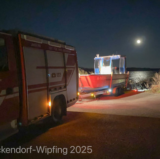 Jeder Übungsteilnehmer musste dabei den Anhänger an- und abhängen, sowie den Bootsanhänger samt Boot vom Wasserwehrhaus bis zur Slipp-Stelle manövrieren, um das Boot zu Wasser zu lassen. Aufgrund der einbrechenden Dunkelheit wurde die Slip-Stelle mittels provisorischer Beleuchtungsmaßnahmen ausgeleuchtet.
